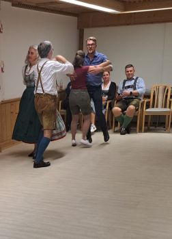 Der Tanzleiter mit Tanzleiterin aus Bad Ischl, mit ihrem Musikanten und einem Tanzpaar, lehrten uns am Abend den „Ischler Landler“ und den „Ischler Steirischen“. Natürlich waren wieder Gstanzlsingen und Poschen mit dabei. Jeden Abend wurde nach dem Schwerpunktprogramm mit Toni und Gerhard noch bis 23 Uhr abgetanzt und anschließend im gemütlichem Stüberl zusammengesessen und wie man so schön im Salzkammergut sagt „trüfelt“.