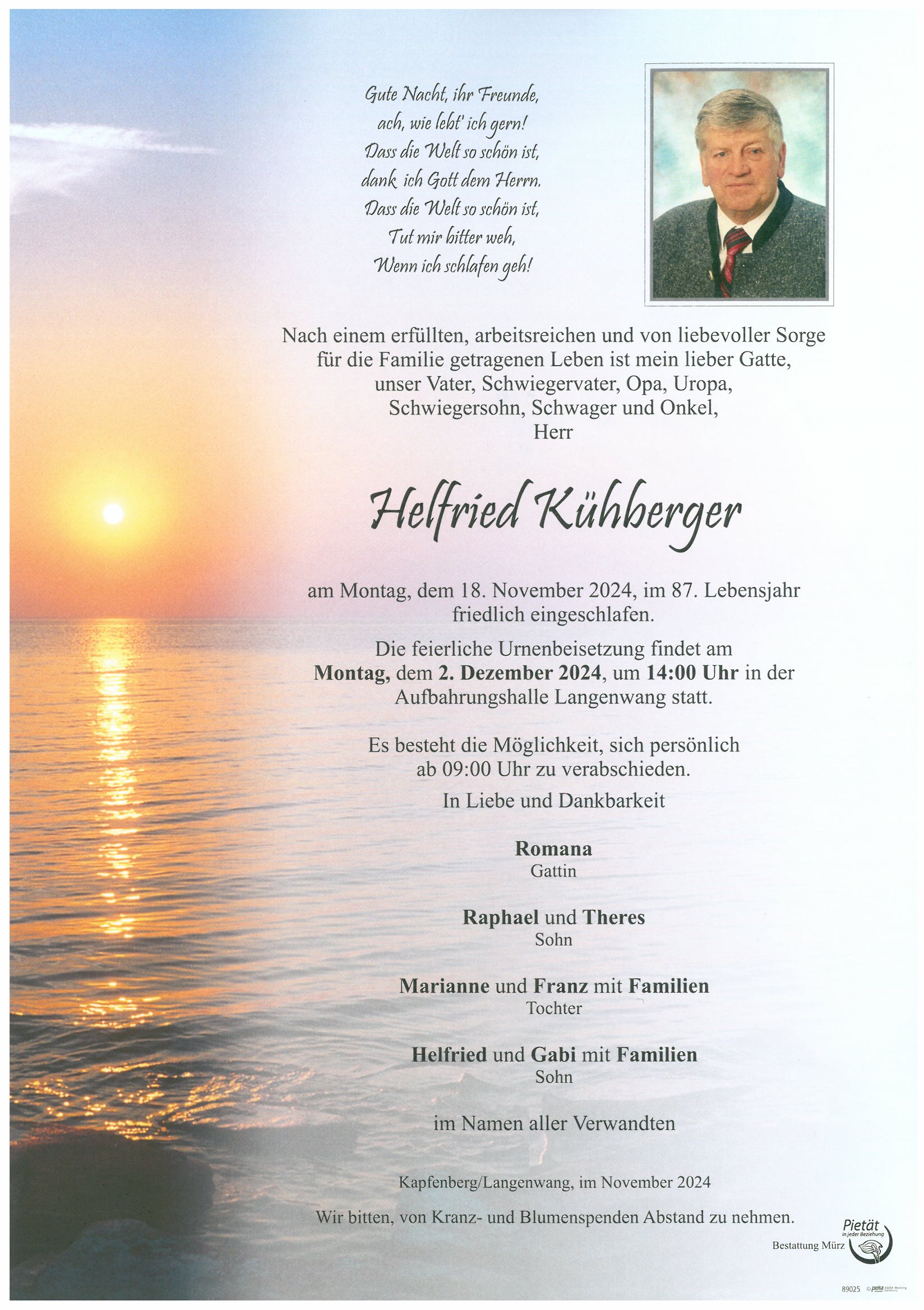 Wir sprechen unser aufrichtiges Beileid der gesamten Trauerfamilie aus.